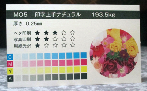 名刺やカードに利用しやすい用紙を、ご用意しております。用紙により割り増しになる物もあります。画像をクリックすると拡大画面と用紙の説明をご覧頂けます。